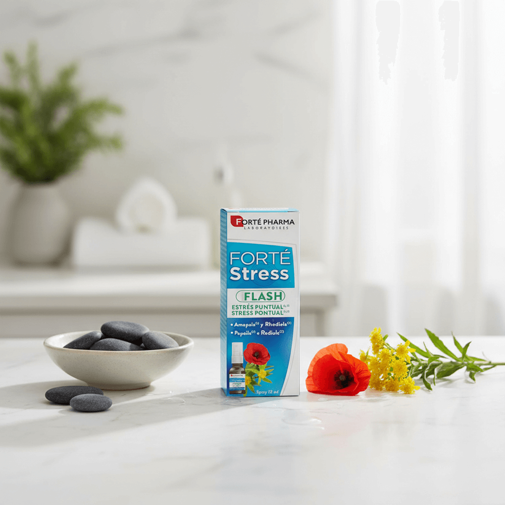 Forté Stress Flash es un complemento alimenticio elaborado a base de rhodiola, amapola y vitamina B3.